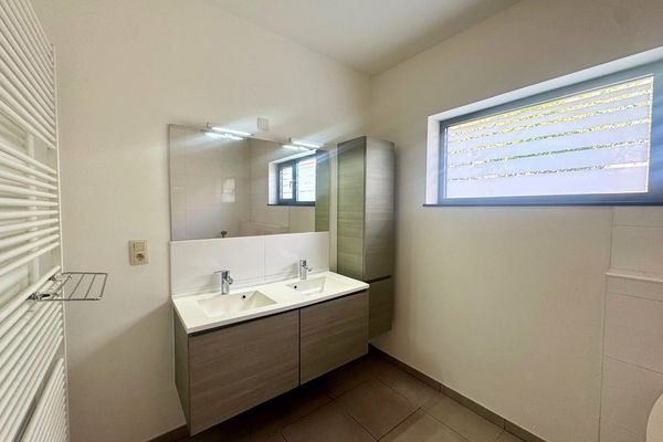 Inkomhal, gastentoilet, zeer ruime en aangename woonkamer (+/- 8,8 x 4,8m), volledig modern uitgeruste ruime open keuken met keukeneiland (vaatwasser - combi-oven, e.d.) uitgevend op het terras (28 m²), ruime berging/wasplaats, nachthal, badkamer (ligbad - inloopdouche - toilet - dubbel lavabomeubel), 3 ruime SLAAPKAMERS (+/-3,5 x 3,6m, +/-3,5 x 3,5m en +/-3,5 x 3,8m).
