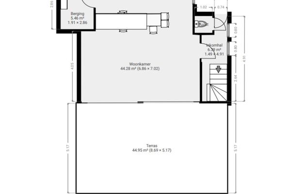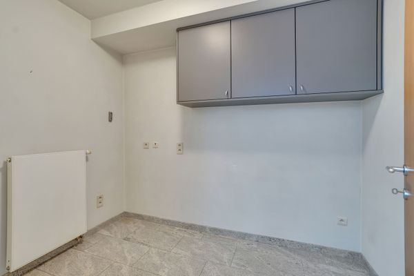 GLV: Inkomhal met afgesloten toegang tot de kelder/garagetrap, gastentoilet, moderne woonkamer (+/-7,50 x 3,70m) voorzien van maatkasten, een ingebouwd bureel en grote raampartijen / veel daglicht uitgevend op het zeer ruime terras (+/- 9,50 x 5,20m) met uitzicht op de tuin en het bos. Verder voorzien van een uitgeruste open keuken voorzien van kwalitatieve toestellen (AEG) met aansluitend de berging.