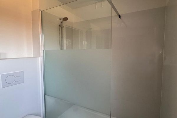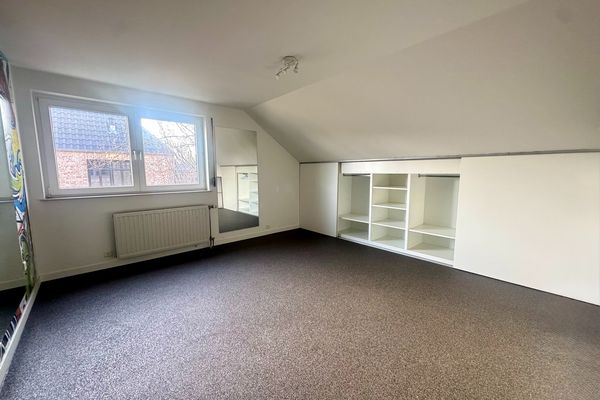 VERDIEPING 1: Nachthal, berging, 3 ruime SLAAPKAMERS (+/- 4,80 x 3,40m), (+/- 4,50 x 4m) en (+/- 4,50 x 4m) waarvan 2 voorzien van inbouwkasten, badkamer (inloopdouce - toilet – badkamermeubel).